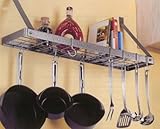 Gain easy access to all your pots and pans with this Hammered steel and chrome bookshelf. Designed to work in all kitchens. This heavy-duty rack comes with 8 hooks to hold all your pots and pans