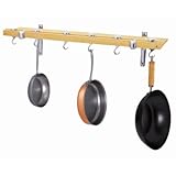 Take a look around your kitchen-- chances are good that you have unused wall space. Well don't waste it anymore! The Innovative Wall Pot Rack is designed to use that precious space to get your pots out of the cupboards and up onto the walls for easy access and great display. This rack is done in your choice of Natural Wood or Anthracite Gray finish with cast aluminum accents for a sleek modern look. It comes out from the wall 9 inches to give you enough room to hang almost anything. The hooks are on a dual track system designed to hold with security and style. Use your creativity and hang it beneath a high cupboard for the ultimate space saver! Image shown is the Natural Wood.