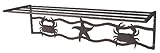 This Rainsford & Gale Ocean Life Wall Mount Pot Rack - Fast is made of precision iron castings with handcrafted and welded wrought iron frame. The dark wrought iron finish has high-temperature baked powder coating and four hanging points prevent rocking and double hanging capacity. The pots, pans and skillets can either be hung on pot hooks or stacked on top of the shelf. It includes four wall lag screws, and (12) pot hooks.