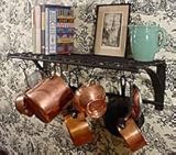 The Epicure wall mount pot rack by Rainsford & Gale has room to hang 12 pots and also has a shelf for additional pots and pans or other kitchen items. The pot racks measure 32 inches wide and are finished in a Dark Wrought finish to complement any décor. Handcrafted and welded with iron castings and a wrought iron frame, the pot racks are built to last. The pot racks come with installation instructions and all the necessary hardware. Additional hooks and links are available.