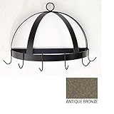 Store your quality pots and pans in a traditional, yet decorative way with this wall mounted pot rack. This pot rack features an intriguing half dome design! This pot rack is hand crafted from wrought iron, and is proudly made in the USA. This sturdy pot rack is ready to enhance your kitchen, and free up space in your cabinets. No more searching for that perfect saute pan - it'll be hanging within easy reach with this fantastic pot rack. Available in your choice of eight finishes - Satin Black, Aged Iron, Antiqued Bronze, Burnished Copper, Gun Metal, Jade Patina, Sand, and Cobblestone. This pot rack comes with six hooks! Assembly level/degree of difficulty: No Assembly Required. Made in America
