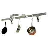A big hit from the moment we introduced them, these 36" racks keep your cookware, cookbooks and other necessities at your fingertips. The arms can be flipped to support rack from the bottom. Includes matching grid, 6 angled and 6 straight pot hooks plus drywall toggles. Utensils, extension hooks and pots are not included.