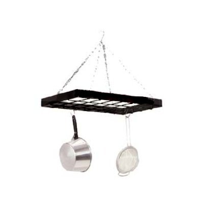 This stylish and functional rectangle hanging pot rack features a matte black finish and allows you to store kitchen items with ease. Simply hang pots from the grill and stack pans on top. Convenient and sturdy, this pot rack is easy to install and is the perfect space saving solution to store and display your favorite kitchenware.